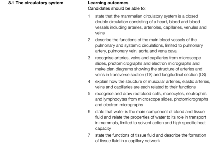 CIE Tissue Fluid and structure and function of blood vessels - 20 Multiple Choice Questions